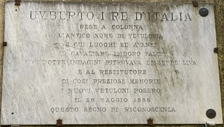 this is not something else entirely. At the time, people were fascinated when, shortly afterwards, a tomb stele was discovered showing a man with a double axe. This fitted in perfectly with the literary sources. For it was clear from Silius Italicus’ Punica that Rome owed its symbols of power – the sella curulis and fasces – to Vetulonia. Just how impressed even the Italian authorities were is shown by the fact that King Umberto I personally issued an edict giving the village of Colonna back its name of Vetulonia. A marble plaque commemorates this event.
