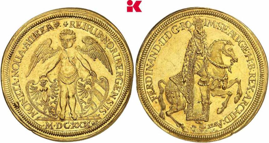 This coin was not an outlier. Everything minted in former Bohemia climbed in value. A ducat from Prague in 1615 fetched 44,000 euros (instead of 10,000 euros), and a Reichstaler from 1630 with the elegant frontal portrait of Ferdinand II fetched 60,000 euros (instead of 7,500 euros).
