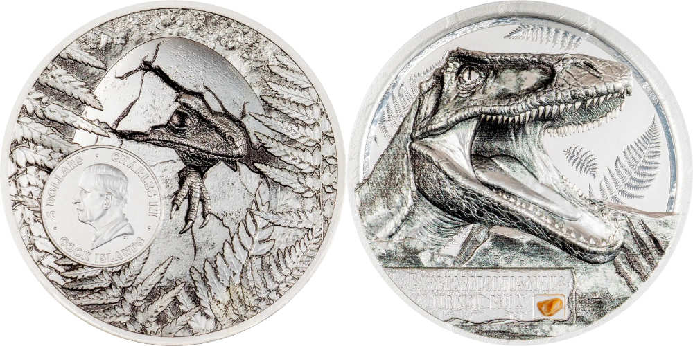 Let’s end this brief insight into the CIT winter launch with an evergreen. Dinosaurs are still a popular collector’s item. And when an attractive coin with a dinosaur motif also contains a tiny piece of a precious fossil, we have the perfect object for cross-marketing. The Carcharodontosaurus on the Cook Islands’ $5 coin will not only interest coin collectors, but also all fossil collectors who will never be able to afford a complete Carcharodontosaurus tooth. The fact that the designers at CIT also managed to incorporate what we now refer to as the “cute factor” into the design is a stroke of genius. The reverse design also appeals to young women.
