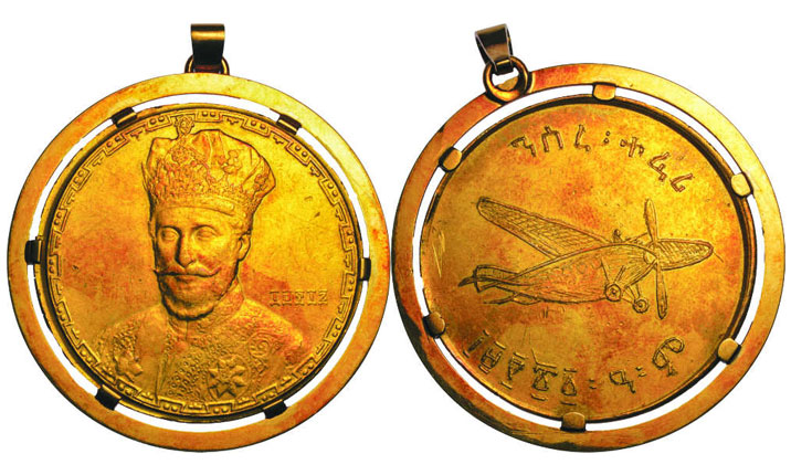 In 1930, Haile Selassie founded the Ethiopian Air Force. He was assisted by three French pilots. One of them received an order and two portable medals, which will be sold at Gadoury on 4 October 2025.