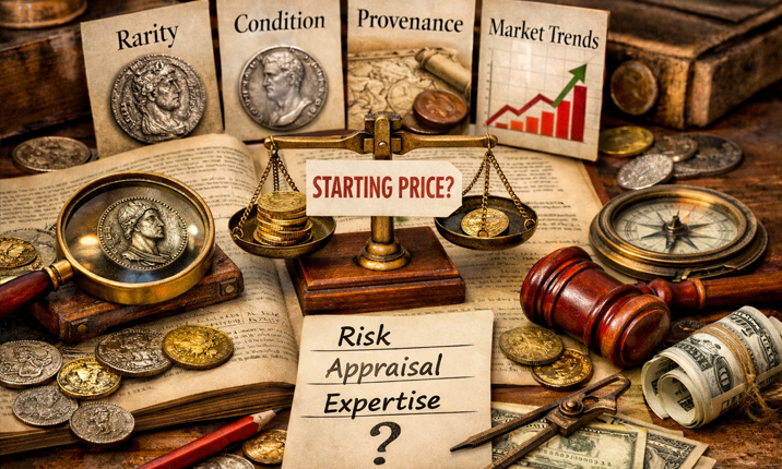 How is the starting price of a numismatic lot determined? Rarity, condition, provenance and market trends determine the valuation – a balancing act between risk, attractiveness and expertise.