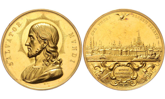 The extremely rare 24-ducat Salvator Mundi medal from the time of Franz Joseph I – a highlight of Viennese medal art – is coming up for auction.