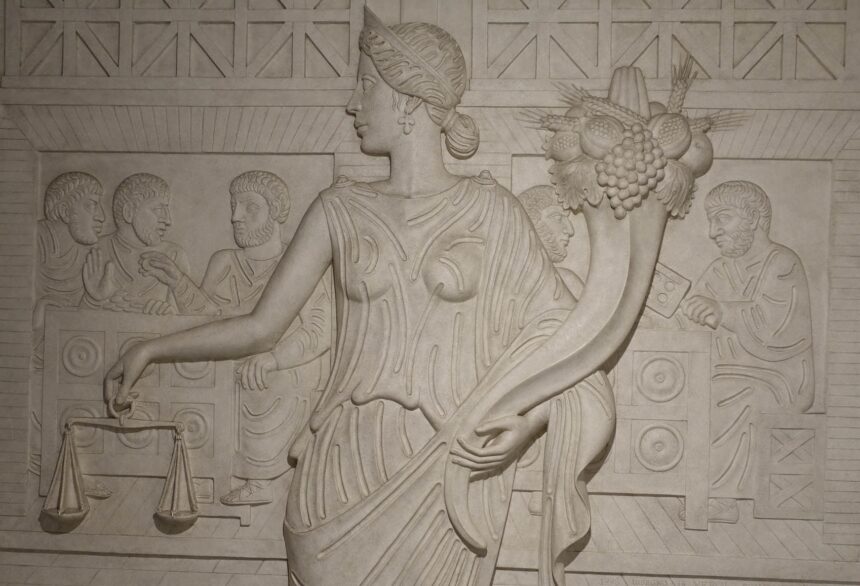 As mentioned at the beginning, the letters CCAA stand for Colonia Claudia Ara Agrippinensium, loosely translated as City of Roman Law of the Agrippinenses, founded by Claudius at the altar [for the imperial cult]. Those responsible for the coin design chose a female figure holding scales in one hand and a cornucopia in the other. These attributes identify her as Moneta, the incarnation of Roman coinage.