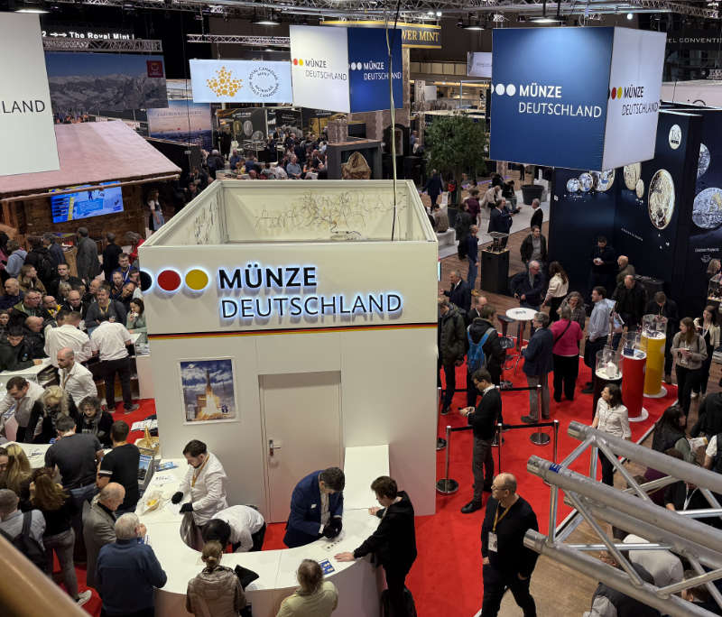 Somewhat overshadowed by the price of gold was the Tower Mint, which will celebrate its 50th anniversary in 2026 and was therefore the guest of honor at the World Money Fair. It should not be confused with the Royal Mint exhibition in the Tower of London. While the latter only commemorates the great past of British coin minting, the Tower Mint is the only mint still operating in London. Among other things, it mints coins for Gibraltar, the Isle of Man, and the Falkland Islands.