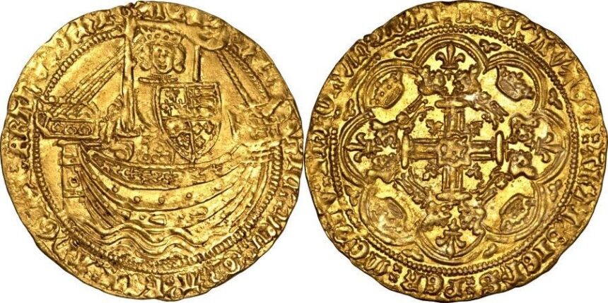 Il Noble è una delle monete d’oro inglesi più importanti del Medioevo e occupa una posizione di rilievo nel mondo numismatico. Introdotto per la prima volta sotto il regno di Edoardo III intorno al 1344, il Noble segna una tappa importante nella storia della monetazione inglese, in particolare per quanto riguarda il commercio internazionale e la stabilizzazione del sistema finanziario reale. Il nome “Nobile” deriva dal latino “nobilis”, che significa ‘nobile’ o “illustre”, un titolo appropriato per una moneta che impressionava non solo per il suo peso e la sua finezza, ma anche per il suo aspetto artisticamente sofisticato.